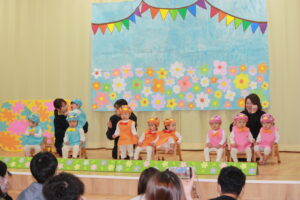 たくさんのお客さんを前にしドキドキしながらも、一生懸命頑張った子ども達。みんなの成長した姿をお家の人に見てもらえたね!